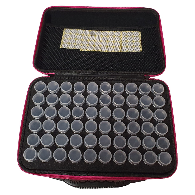- 60 Döschen mit Platz für bis zu 1200 Steinchen