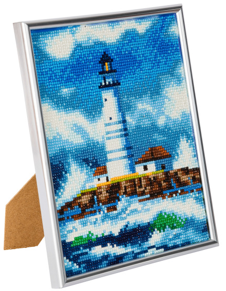 - Bild komplett mit Bilderrahmen zum Aufstellen und Aufhängen geeignet, Motiv Leuchtturm