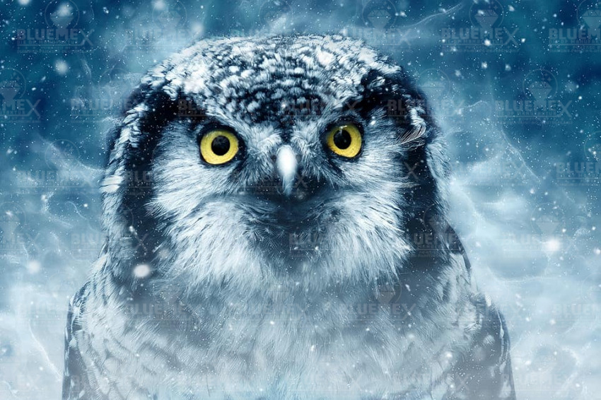 - Bedruckte Leinwand mit Flüssigkleber, mit klarer Folie, Motiv Sperbereule, Bildgröße ca. 60x90cm, Leinwand entsprechend einige Zentimeter größer, Vollbild;