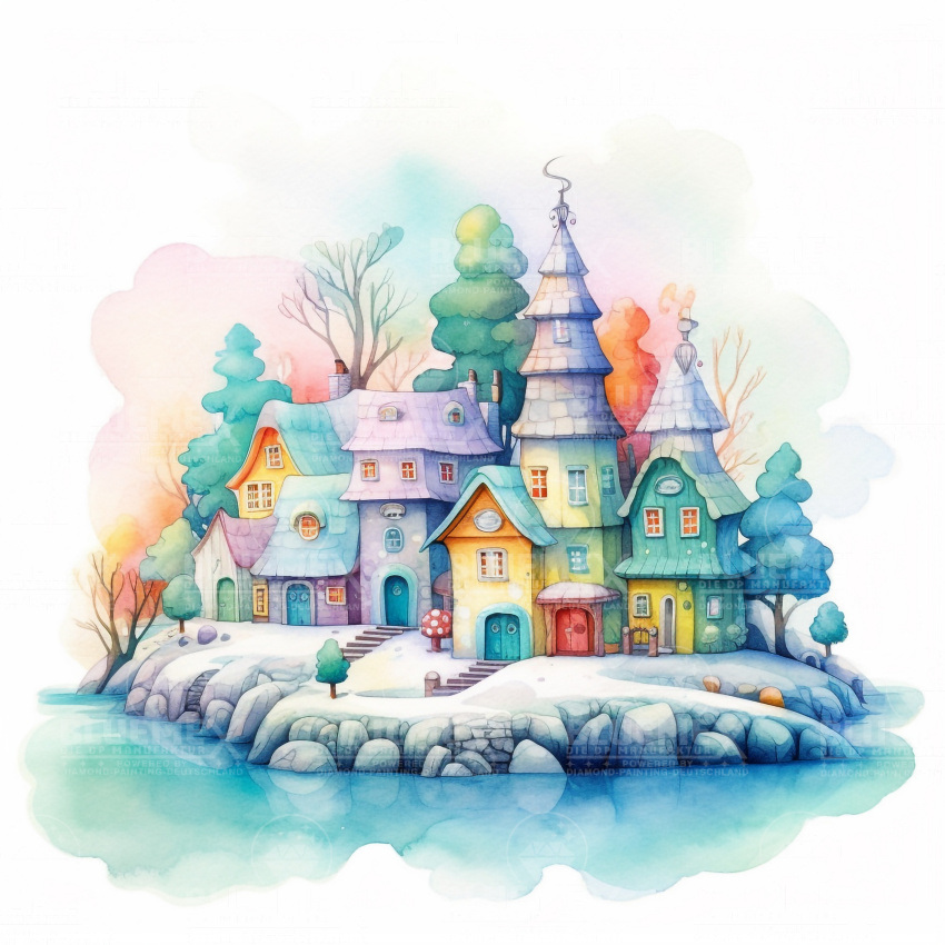 - Bedruckte Leinwand mit Flüssigkleber, mit klarer Folie, Motiv Winter Village, Bildgröße ca. 60x60cm, Leinwand entsprechend einige Zentimeter größer, Vollbild;