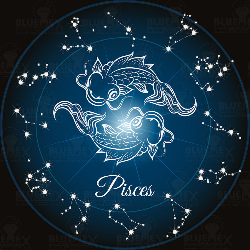 - Bedruckte Leinwand mit Flüssigkleber, mit klarer Folie, Motiv Sternzeichen Fische (Pisces)