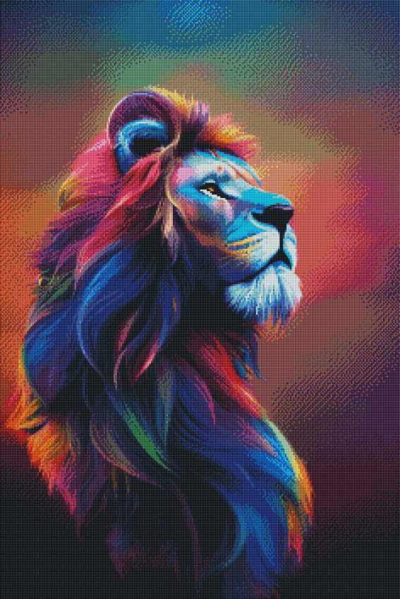Mobile Preview: Diamond Painting picture, colourful lion, square stones, 60x90cm, 70 colours, full picture