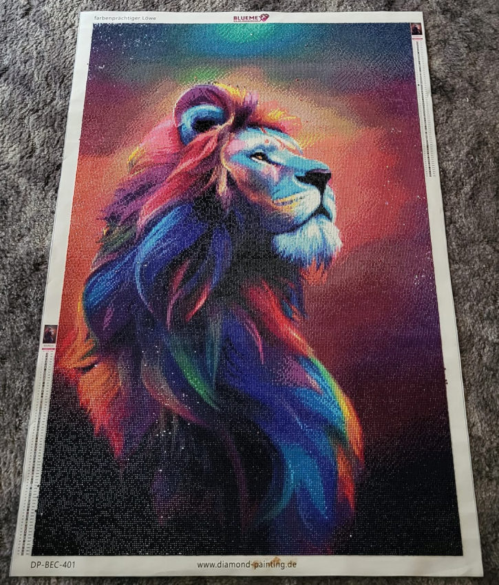 Preview: Diamond Painting picture, colourful lion, square stones, 60x90cm, 70 colours, full picture
