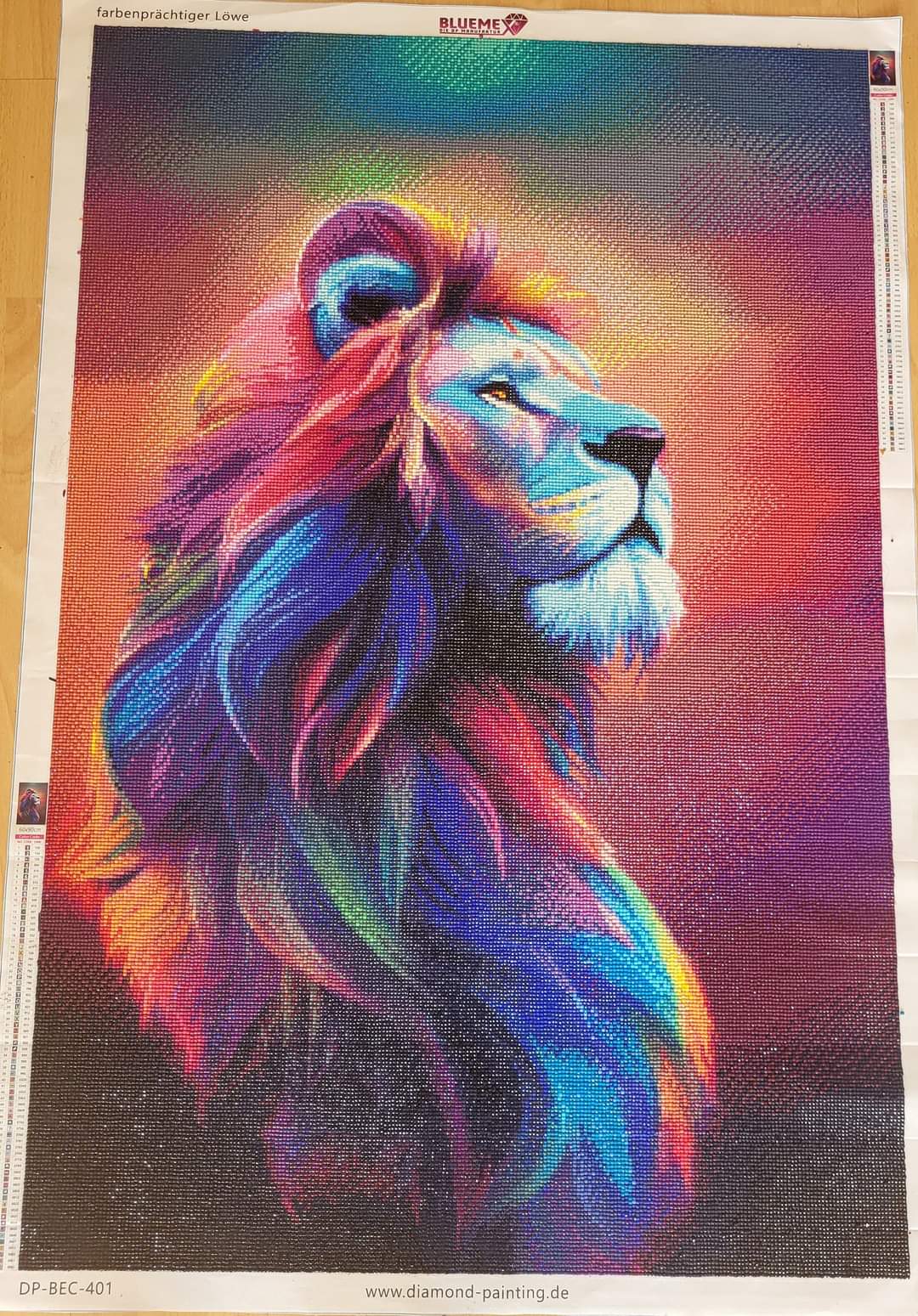 Diamond Painting picture, colourful lion, square stones, 60x90cm, 70 colours, full picture