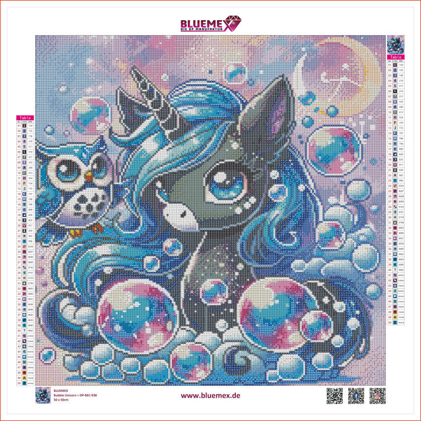 - Printed canvas with liquid adhesive, with clear film, motif Bubble Unicorn, picture size approx. 50x50cm, canvas correspondingly a few centimeters larger, full picture;