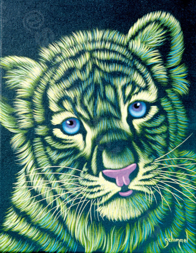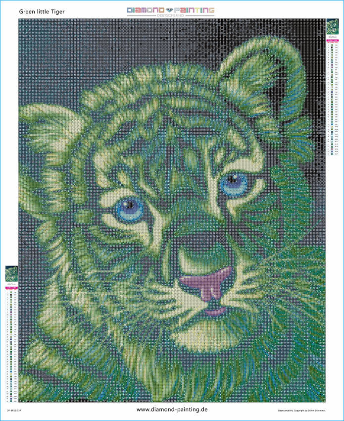 Discover the world of Schim Schimmel with the Diamond Painting picture "Green little Tiger" and create your works of art!