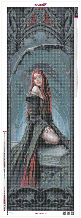 Mobile Preview: Anne Stokes, Await the Night, 50x150cm, 77 colors incl. AB & fairy stones, round stones, full picture