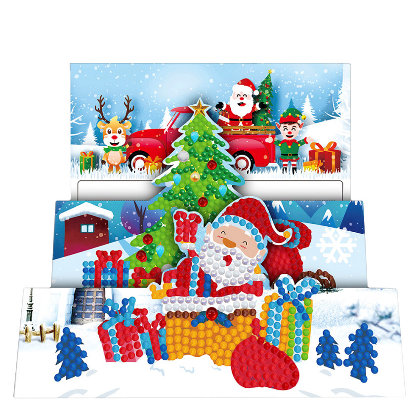 - 3D Weihnachtskarte mit Weihnachtsmann mit Baum.