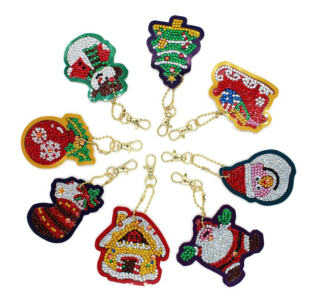 Mobile Preview: Schlüsselanhänger-Set, bestehend aus 16 Anhängern, Motiv Weihnachten, Painting-Set komplett mit Strass Steinchen