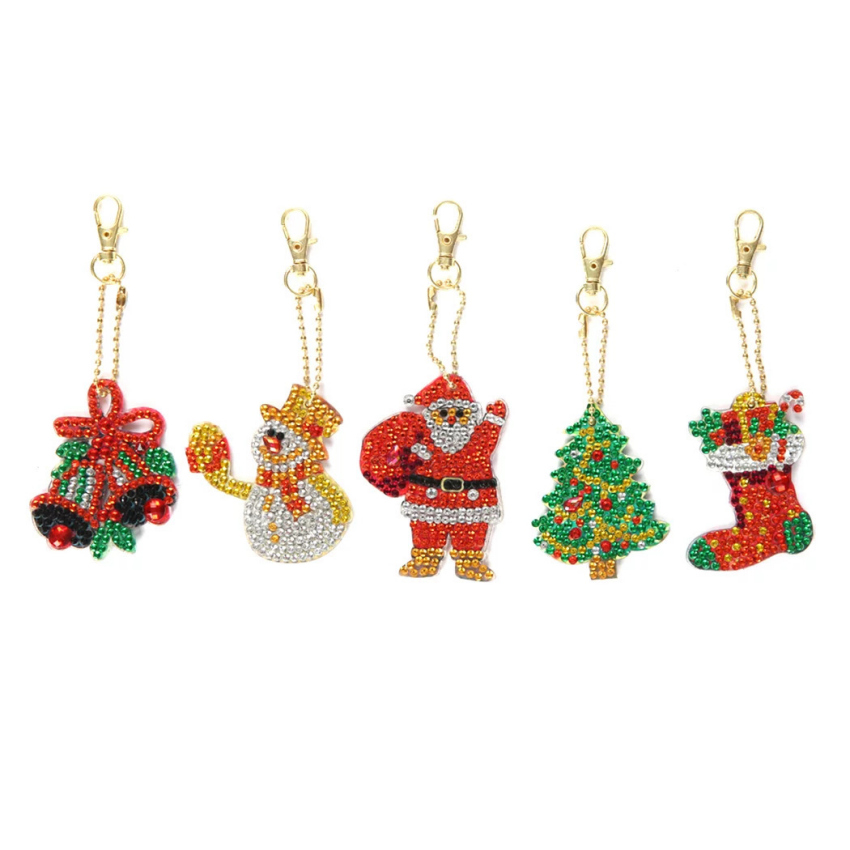 Schlüsselanhänger-Set, bestehend aus 5 Anhängern, Motiv Weihnachten, Painting-Set komplett mit Strass- & Sondersteinchen