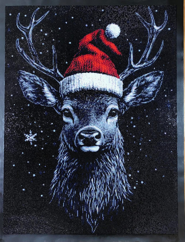 - Printed canvas with liquid adhesive, with clear film, motif Christmas deer, image size approx. 60x80cm, canvas a few centimetres larger, full image;