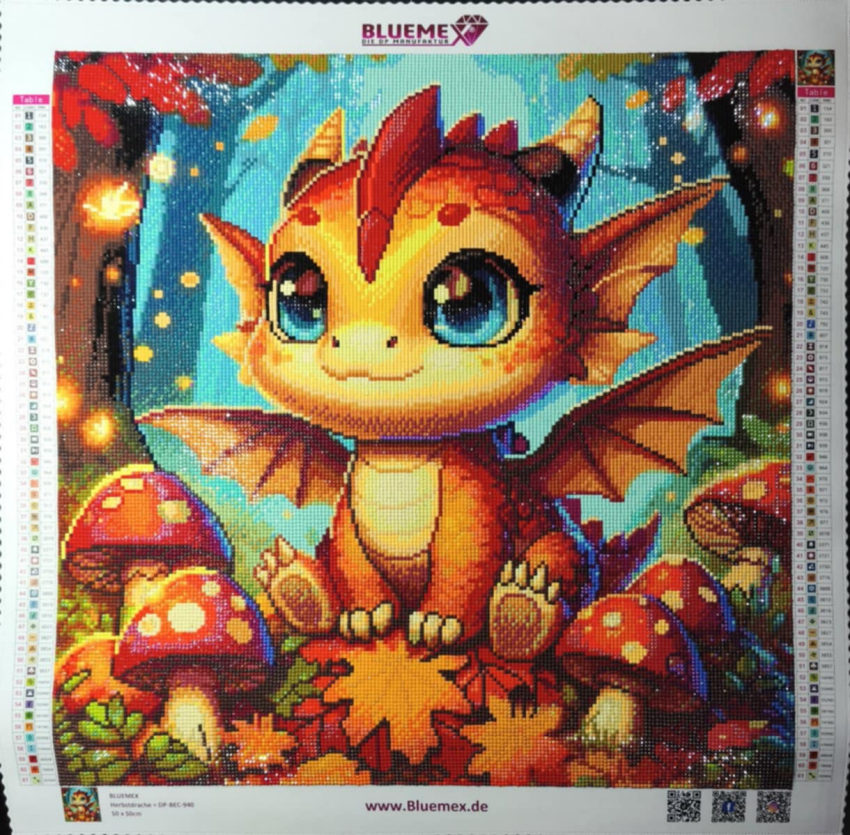 - Printed canvas with liquid adhesive, with clear film, motif autumn dragon, picture size approx. 50x50cm, canvas correspondingly a few centimeters larger, full picture;