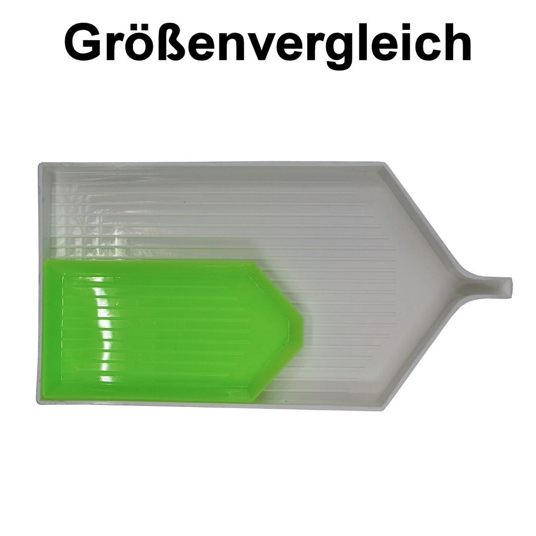 Mach dein Diamond Painting-Erlebnis noch angenehmer mit diesem großen Schiffchen in Weiß. Die Schüttöffnung ermöglicht es dir, Diamanten leicht aufzunehmen und zu verteilen. Die großzügigen Maße bieten genügend Platz für eine Vielzahl von Diamanten.